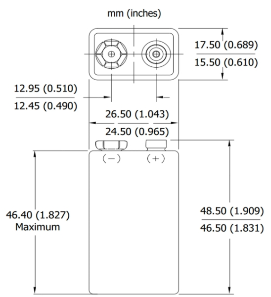 A 9V battery is a DC power source with a voltage of 9 volts (9V), usually in a rectangular shape with dimensions of approximately 26 mm × 44 mm × 17 mm. 9V batteries have high energy density and long service life, and are suitable for various portable electronic devices.